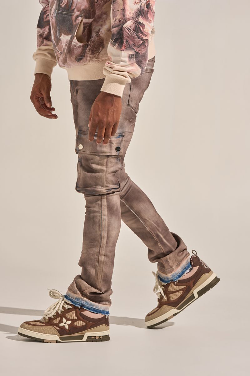 PHEELINGS "BUILT TO HEAL" CARGO STACK DENIM (FADED MAROON)
